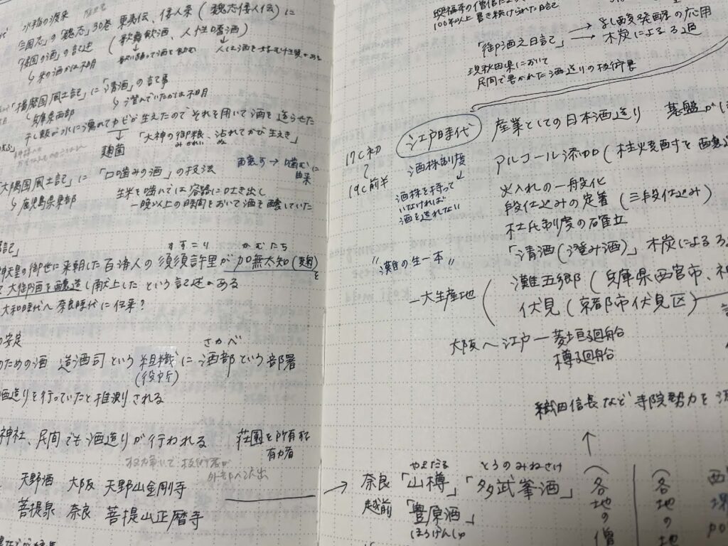 ナミサトクラスの合格体験記を拝見すると、多くの方がご自身でノート等にまとめておられました。自分は教本に書き込んでメモ帳程度しか作らなかったので、次に学ぶ時はきちんと作りたいと思っていました。コンクールは教本以外の所からも出題されるので、別教材や資料も読んでノートに書き加えました。これは、いつかSAKE DIPLOMA EXCELLENCEができたら挑戦しようと思っていたので、そのためでもありました。